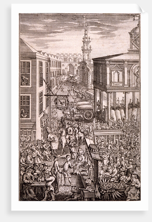 View of Borough High Street, Southwark, London, c1729 showing the open market, in the foreground, the Town Hall, and St George the Martyr, Southwark.