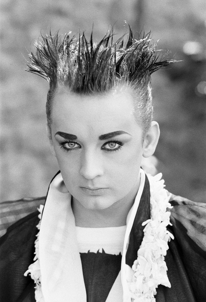 Culture Club singer Boy George poses outdoors in the garden, August 1985.