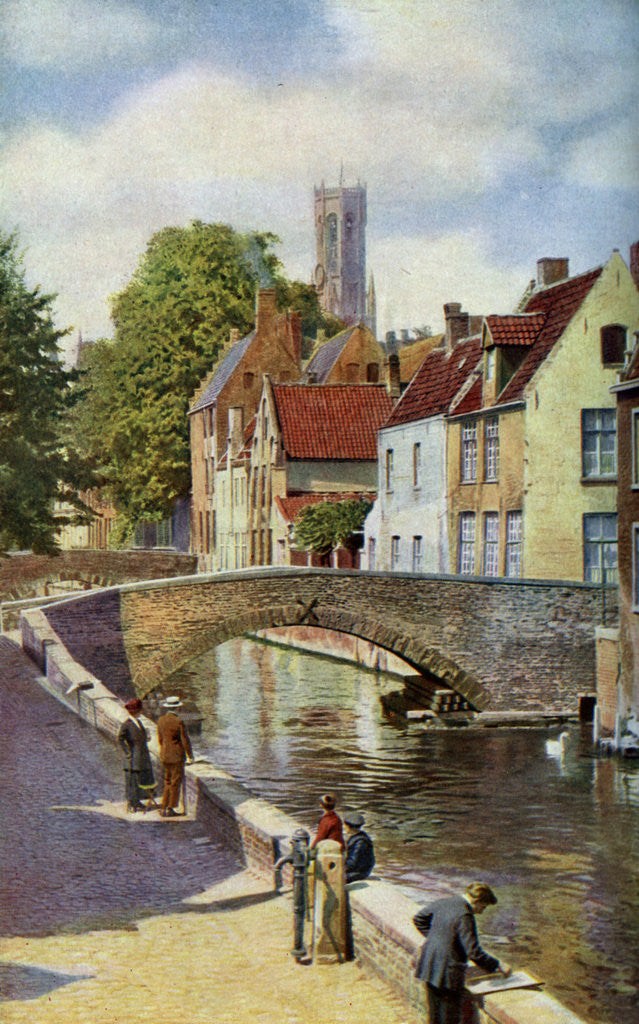 Bridge and Green Quay, Bruges, Belgium, c1924. The medieval belfry can be seen in the distance. A print from Countries of the World, edited by JA Hammerton, first volume, The Fleetway House, London, c1924.