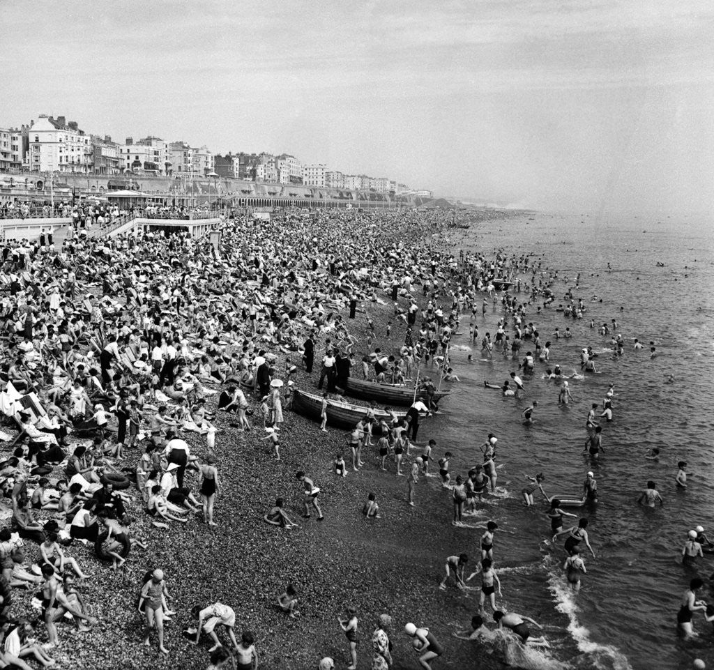 People enjoying the hot weather in Brighton, East Sussex. July 1957.