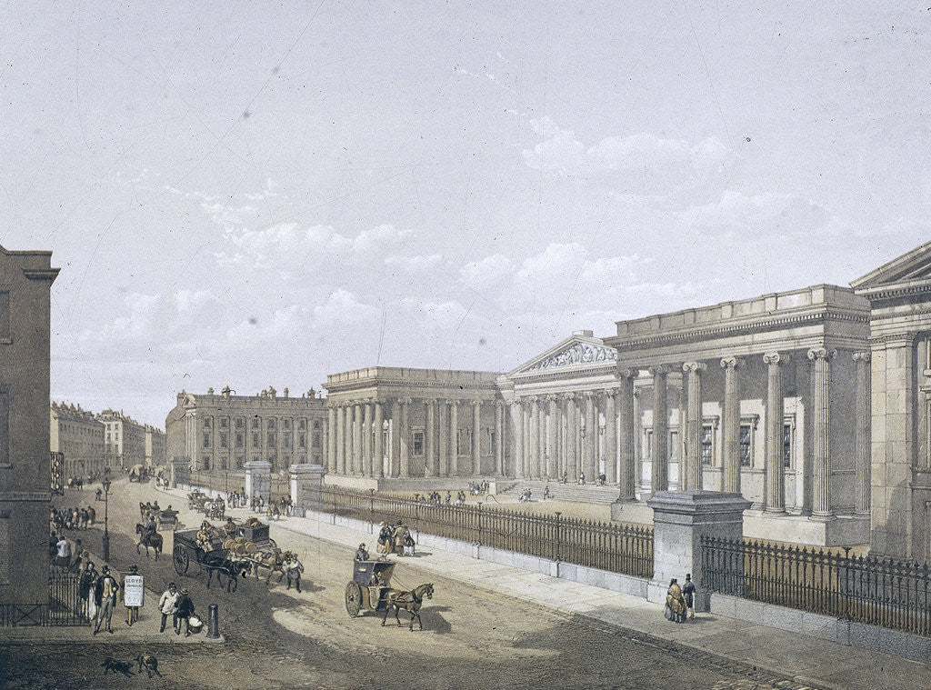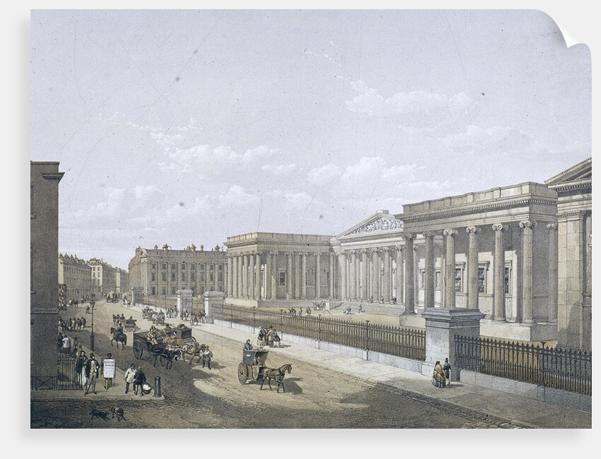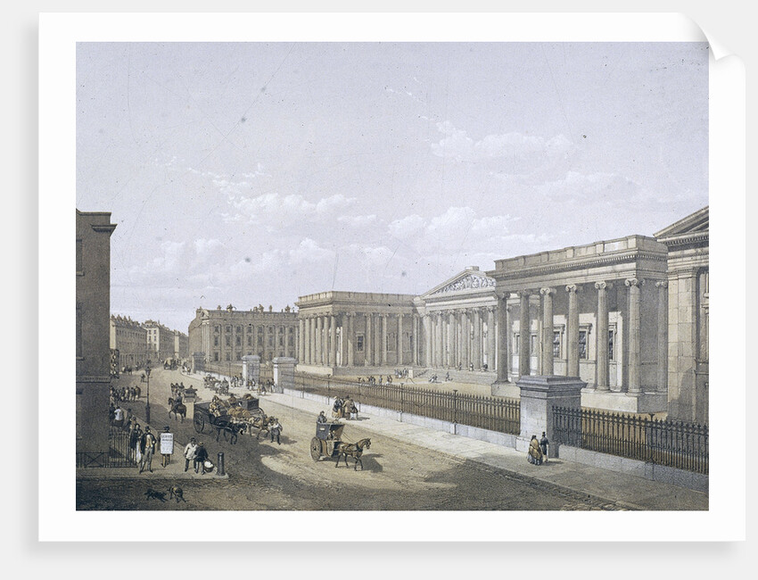 British Museum, Holborn, Camden, London, 1852; a view from Great Russell Street with figures and carriages.