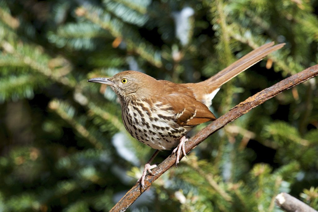 Brown Thrasher perching on branch, McLeansville, North Carolina, USA