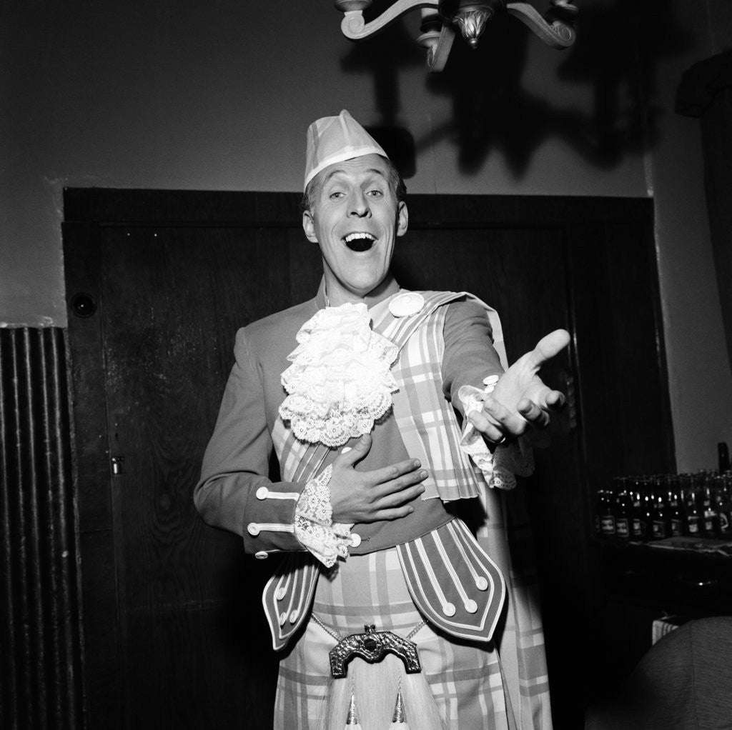 Bruce Forsyth in Scottish costume which he appears in during a new Palladium show. 1st June 1962.