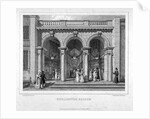 Burlington Arcade, Westminster, London, 1825. View of one of the entrances to the arcade, off Piccadilly, with figures walking through it.