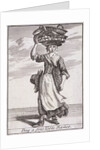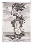 'Buy a fine Table Basket', (c1688?). A basket seller, carrying several baskets on her head, and a number of straw hats. From Cries of London, (c1688?).