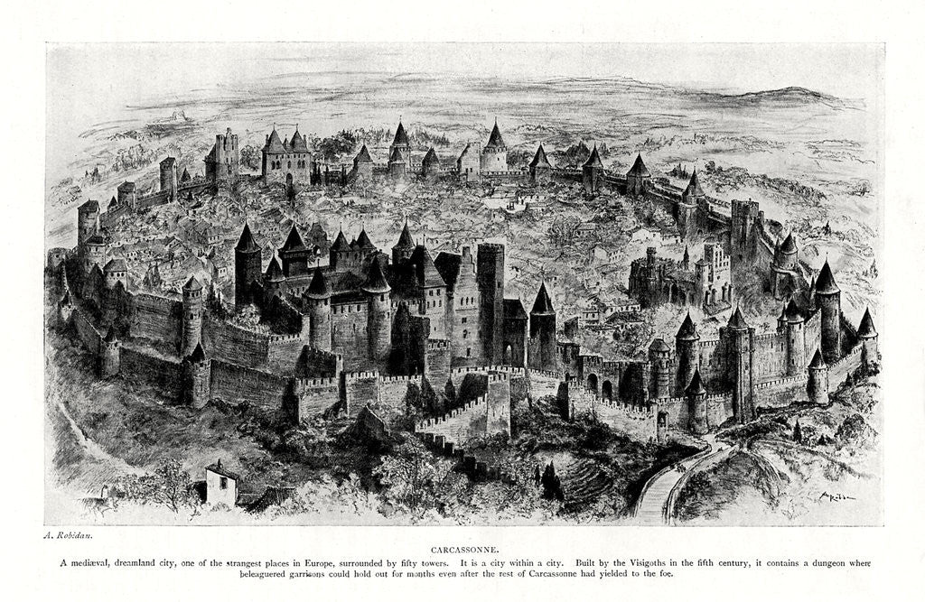 Carcassonne, France. The medieval walled city surrounded by fifty towers was originally built by Visigoths in the 5th century.