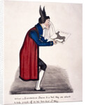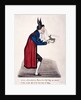 'What a scandalous shame it is that they are allow'd to take people off in this here kind of way', c1830; Sir John Key, with asses' ears, is shown weeping into a large handkerchief over a caricature of himself as a donkey; an allusion to his annoyance at the satires concerning his postponement of the Royal Visit to the City in 1830.