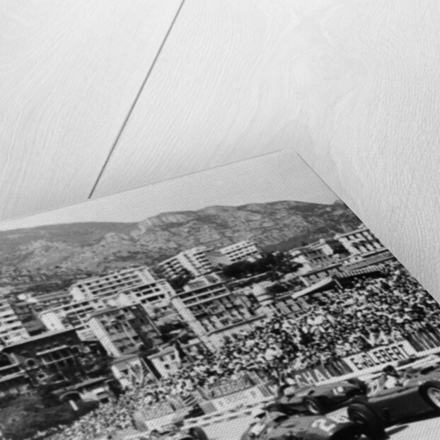 Cars on the starting grid, Monaco, 1950s. A large crowd prepare to watch the start. The buildings of Monte Carlo and the hillsides above provide a spectacular backdrop. Monaco was first used as a Grand Prix venue in 1929.