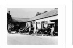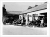 Cars parked at Lord Northcliffe's stable. Chauffeurs are standing by the cars.