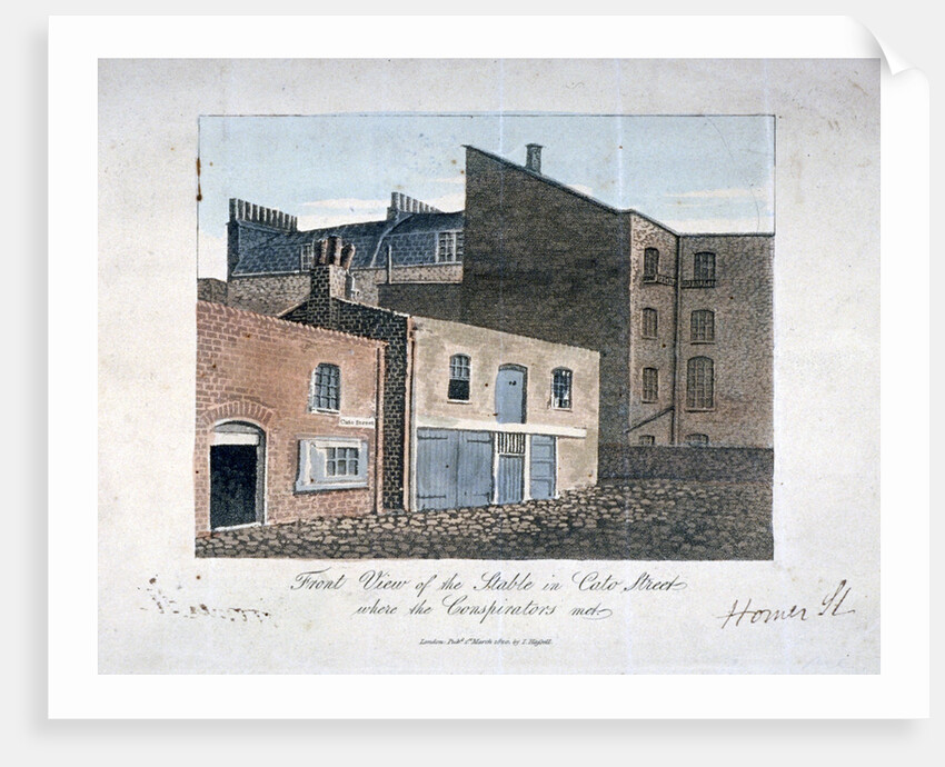 Cato Street conspiracy, 1820. Front view of the stable in Cato Street, Marylebone, London, where Arthur Thistlewood an his fellow conspirators met to plot the assassination of the British Cabinet in 1820.
