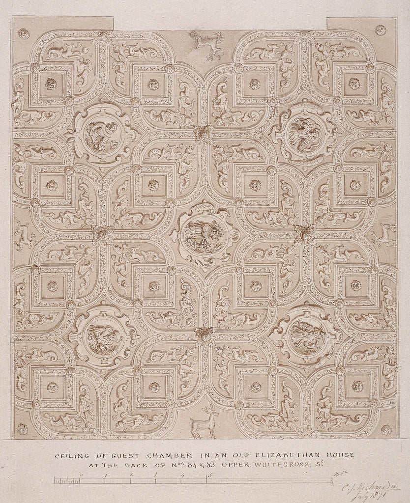 Ceiling of guest chamber in a house on Whitecross Street, London, 1871.