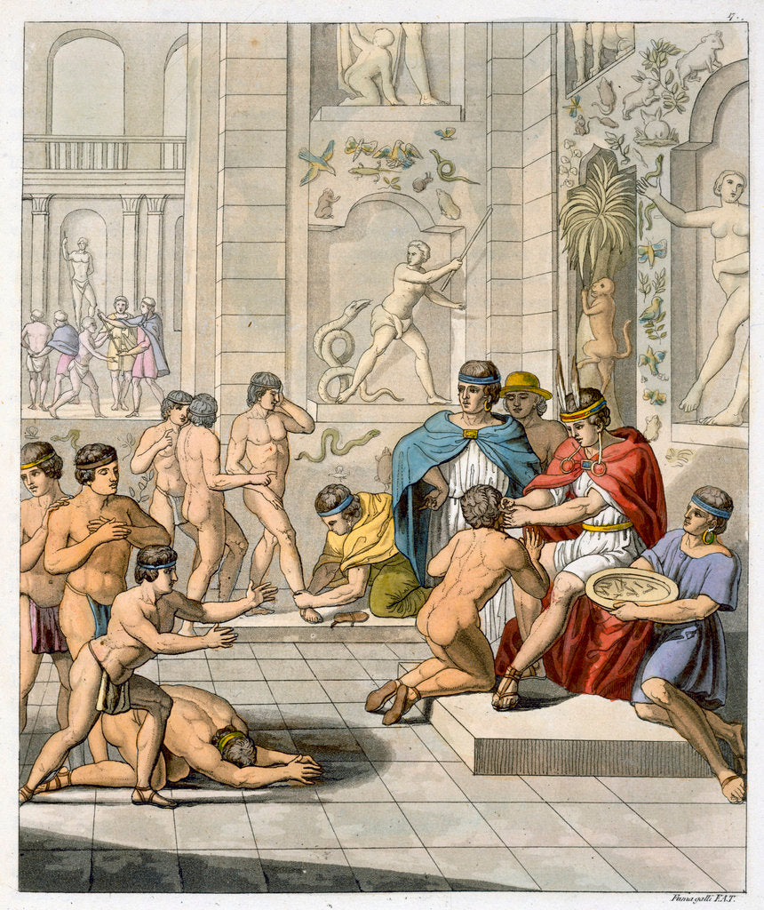 Ceremony in the Inca capital of Cuzco, Peru, c1820-1839. Manco Capac confers distinction on the Princes of the Blood by piercing their ears. According to Inca legend, Manco Capac was the first ruler of the kingdom of Cuzco. Plate 17 from Volume I of Le Costume Ancien et Moderne by Jules Ferrario.