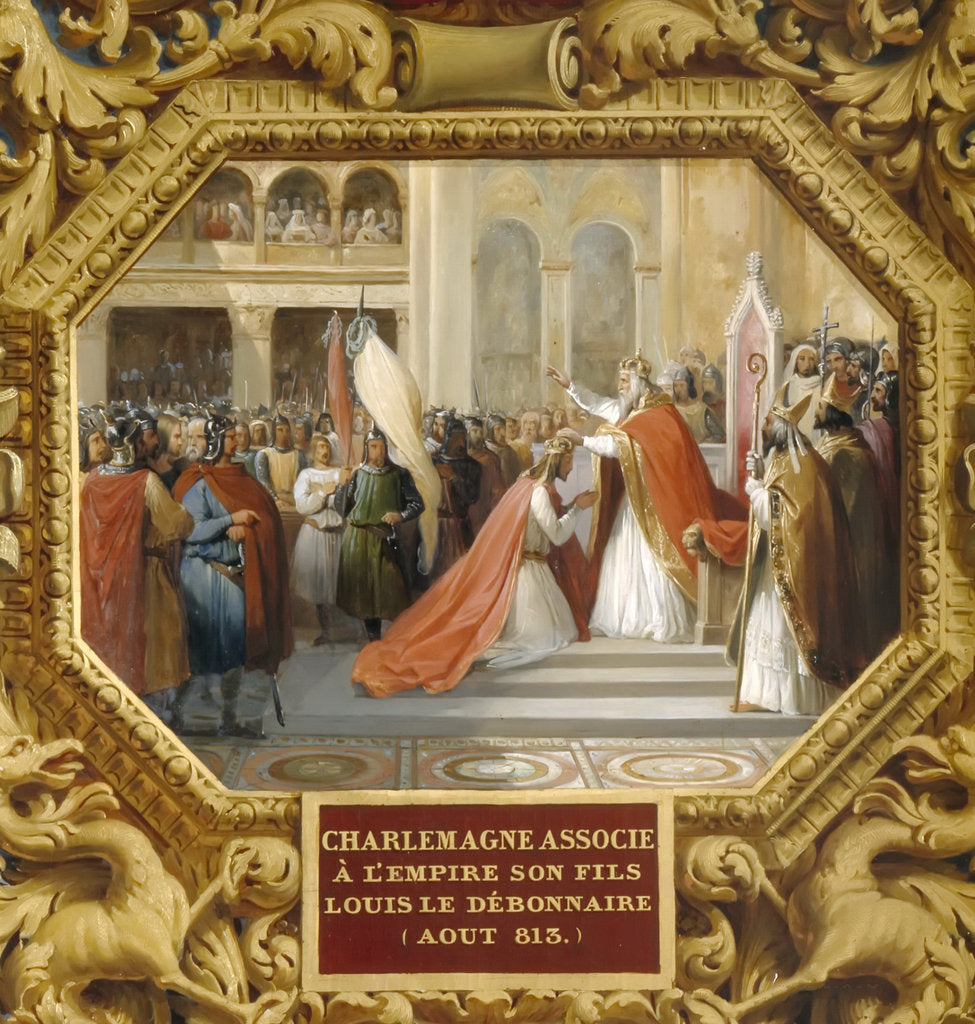 Charlemagne crowns his son Louis the Pious in 813. Found in the collection of Musée de l'Histoire de France, Château de Versailles.