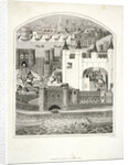 Charles duc d'Orleans imprisoned in the Tower of London with London Bridge in the background, 1803. Boats on the River Thames can also be seen in the foreground.