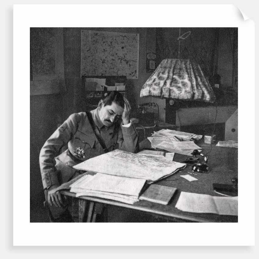 Charles Mangin, French soldier, 1918. Mangin was a general in the French Army during the First World War. Nicknamed the Butcher by his troops, he was a supporter of the strategy of General Robert Nivelle, which led to enormous casualties during the Nivelle Offensive of 1917 and the widespread mutinies that followed it. Removed from command, he was later recalled and commanded the 10th Army which played a vital role in stopping the German advance and launching the Allied counter-attack at the Second Battle of the Marne in July-August 1918. A photograph from Album de Photographies dans L'Intimite de Personnages Illustres, 1855-1915, 8th album, Editions MD, Paris.