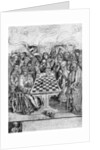 Chess: Death checkmating a king, c1400 (1956). A print from Things, a volume about the origin and early history of many things, common and less common, essential and inessential, by Readers Union, the Grosvenor Press, London, 1956.