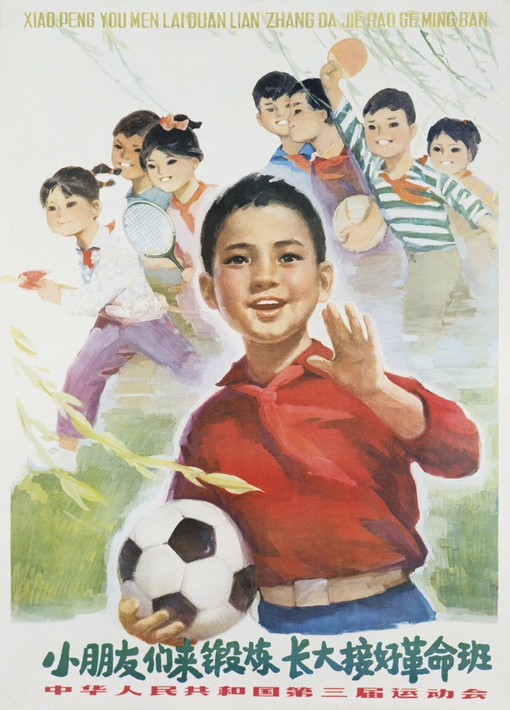 Product details Chinese Cultural Revolution Poster of a Boy with a Soccer Ball