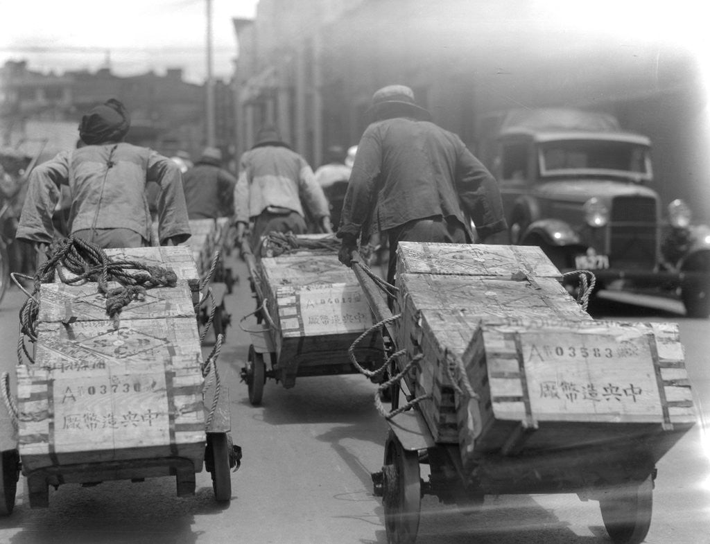 Product details Chinese Men Pulling Heavy Loads of Silver Bullion