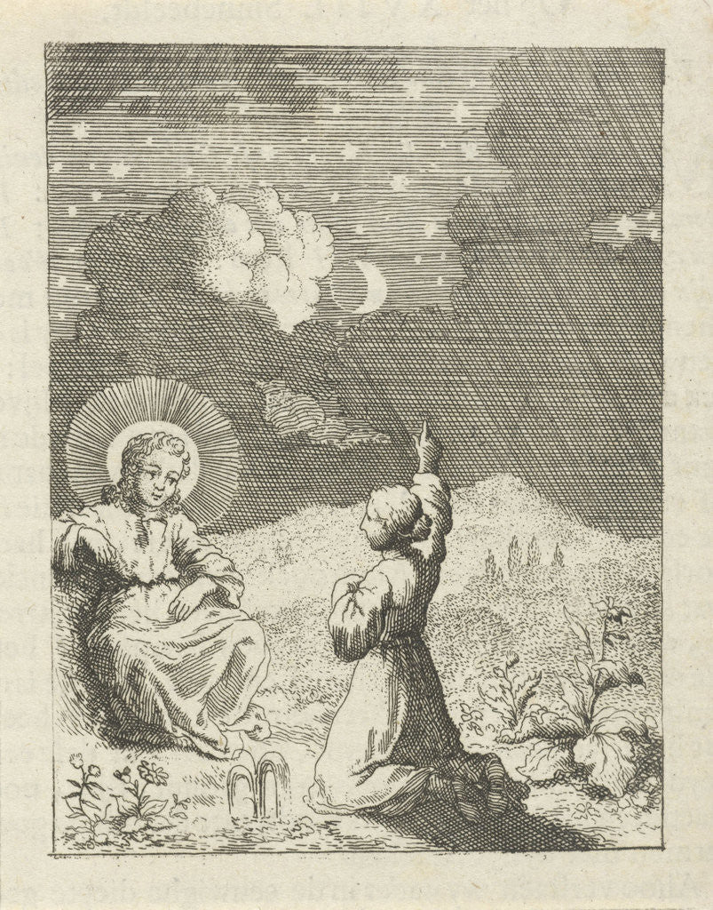 Christ and the personified soul contemplate the starry sky, Jan Luyken, Pieter Arentsz II, 1678-1687