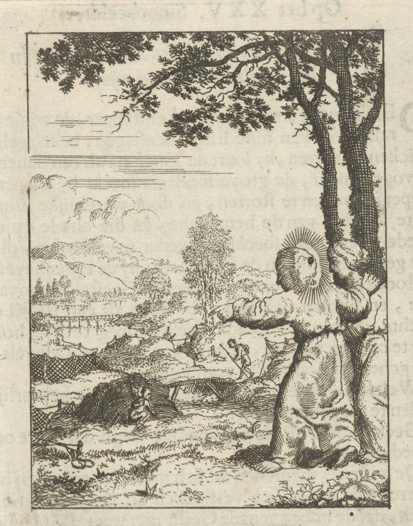 Christ and the soul personified, overlooking a landscape, print maker: Jan Luyken, Pieter Arentsz II, 1678 - 1687