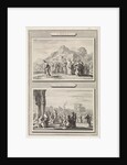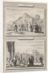 Christ gives advice to a rich young man and the sermon of Christ before the temple, Jan Luyken, Pieter Mortier, Anonymous, 1700