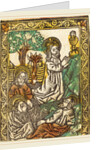Workshop of Master of the Borders with the Four Fathers of the Church, Christ on the Mount of Olives, 1460-1480, metalcut, hand-colored in yellow, red-brown lake, and green