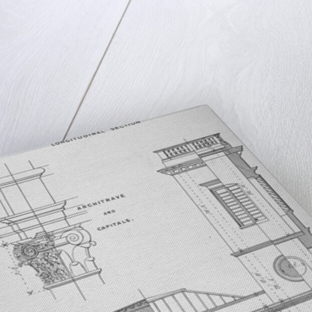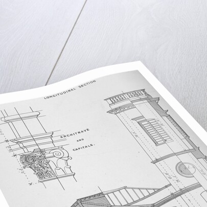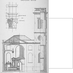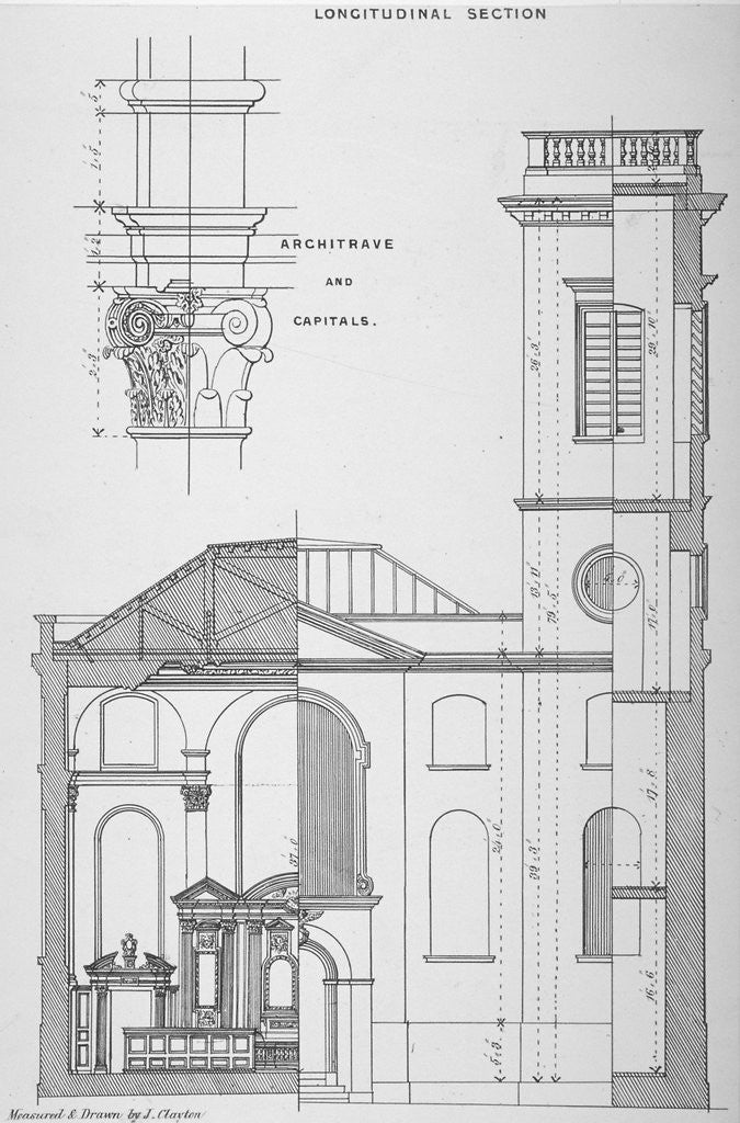 Church of St Clement, Eastcheap, City of London, 1860. Cross sectional drawing of St Clement, Eastcheap with detail of a column architrave.