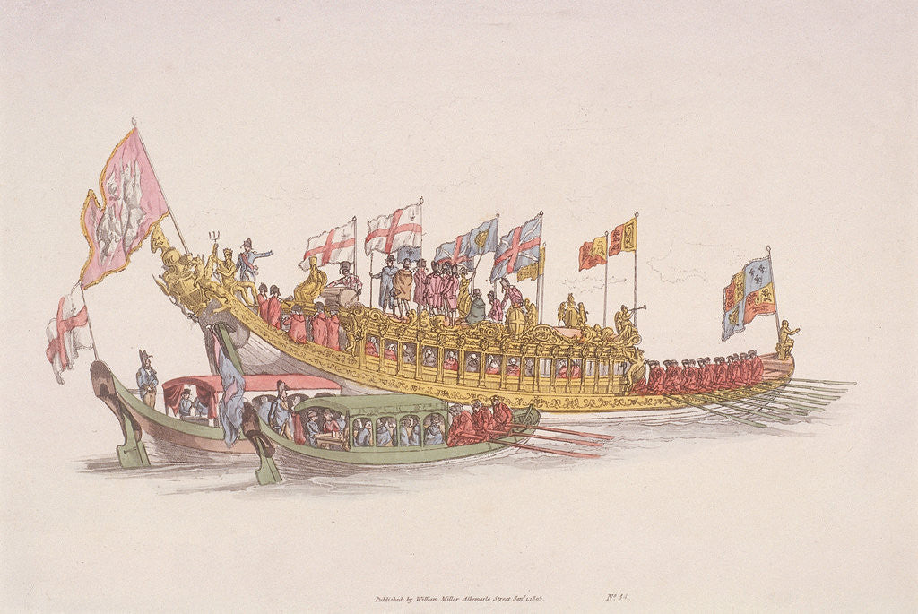 City of London State Barge, 1805. With two smaller barges.
