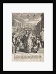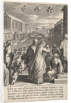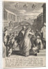 Cityscape with in the foreground a group of figures, looking up at the sky, they see three times a crescent with the busts of Dominicans: St. Thomas Aquinas, St. Ambrose and St. James the Greater, print maker: Egbert van Panderen (mentioned on object), Dating 1610