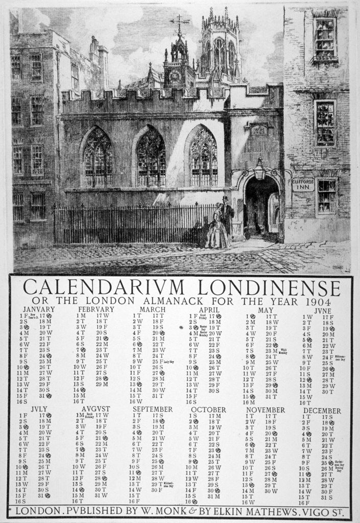 Clifford's Inn, London, 1903. Calendarium Londinense, or the London Almanack for 1904, surmounted by a view of Clifford's Inn.