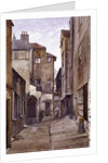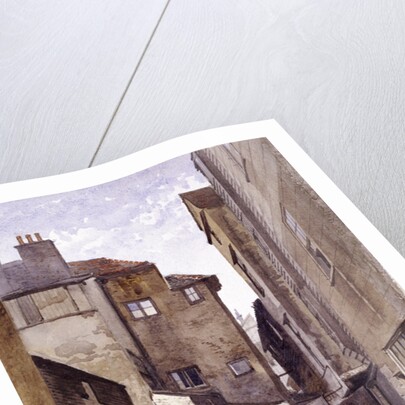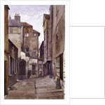 Back view of Cloth Fair, London, 1884; the Gothic window looks into the ambulatory of St Bartholomew's Priory and almshouses can be seen on the left.