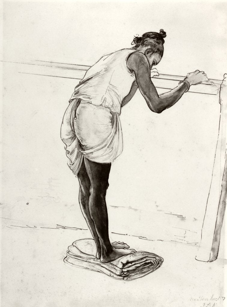 Cloth Finisher, from a collection depicting craftsmen of North West India, by John Lockwood Kipling (1837-1911). Ink pencil and wash drawing. India, late 19th century.