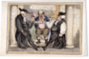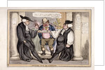 'Coming out of church', London, c1815; two church dignitaries, one on either side of a church door, hold an alms dish between them, preventing a rustic from leaving.