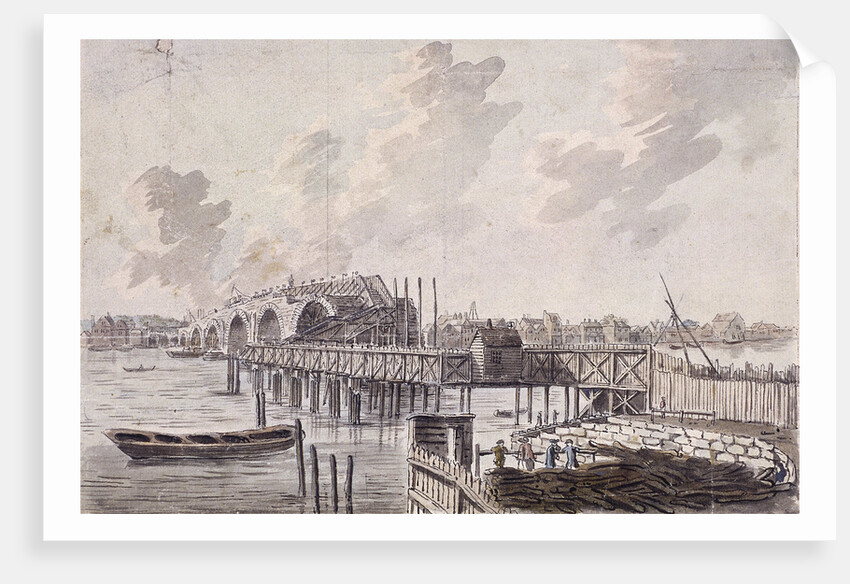 View of a partially built Blackfriars Bridge, London, c1762.