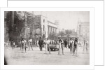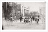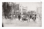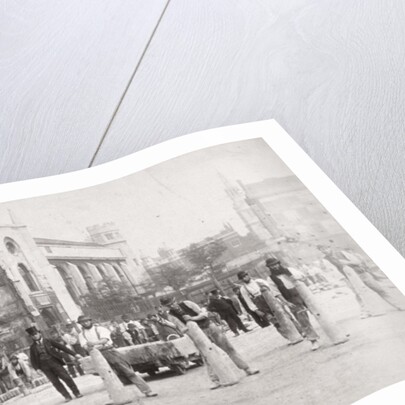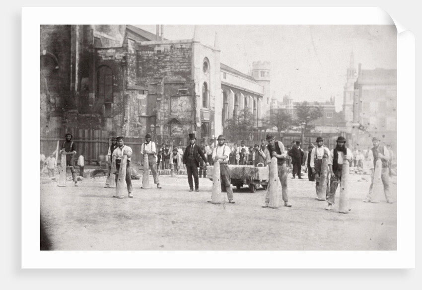 Construction of Holborn Viaduct, City of London, 1869. View of paviours ramming granite pitching at the east end of Holborn Viaduct.
