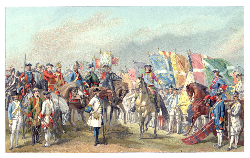 Costumes Of The French Army, (1885). Illustration from 18th Century Institutions, Usages And Costumes, France 1700-1789, by Paul Lacroix, (Paris, 1885).