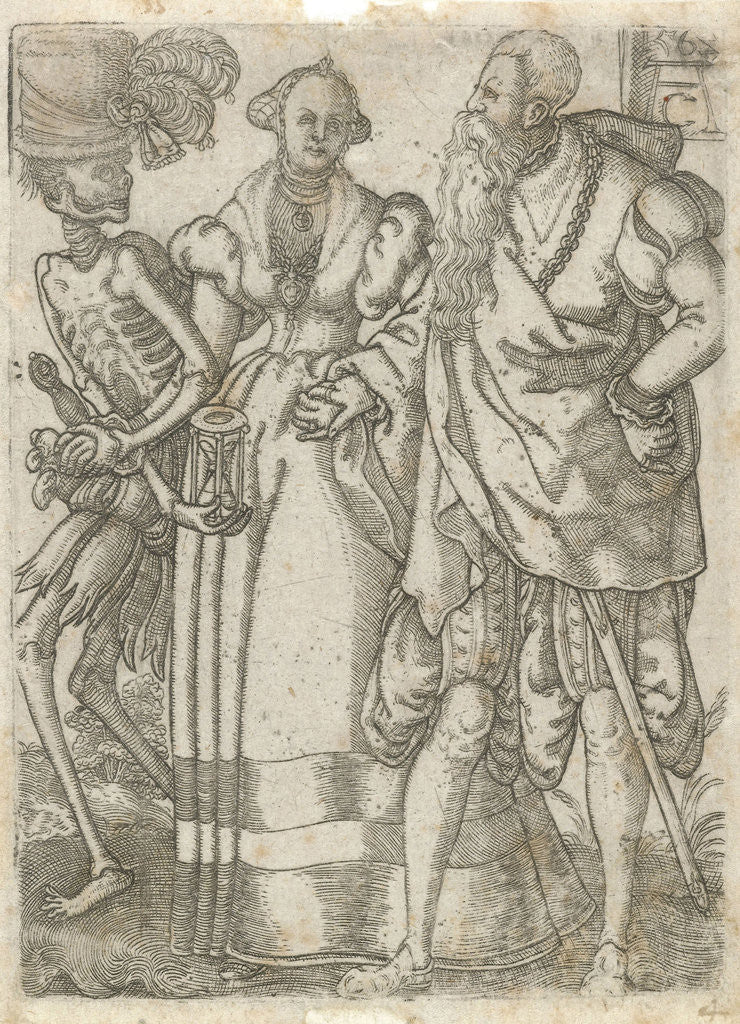Couple with Death, print maker: Monogrammist AC, print maker: Allaert Claesz. possibly, Tobias Stimmer possibly, 1562