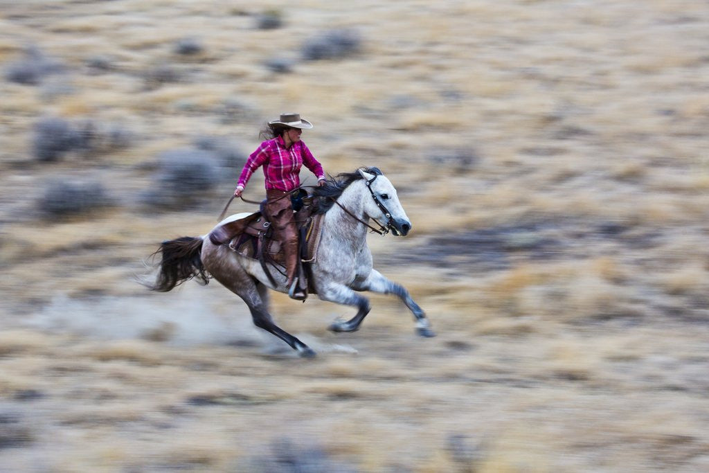 Cowgirl at Full Gallop Riding the Range