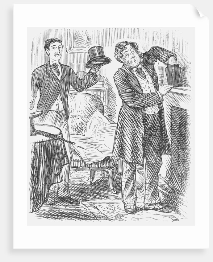 'Cremation', 1875. A young man is dismayed to find his uncle helping himself to some 'snuff' that he found in an urn on the mantelpiece of his nephew's lodgings. In fact, cremation was being strongly advocated as a more hygienic method of disposal of bodies by some groups. The previous year, Lady Dilke's remains were cremated at Dresden in the presence of her relatives. She had been a strong supporter of the process. This came about in part as a result of the growing outrage at the over-filled and terrible urban graveyards that polluted air and soil. One of these is graphically described by Dickens in Bleak House. From Punch, or the London Charivari, 1875.