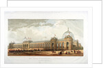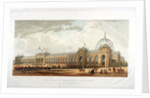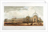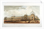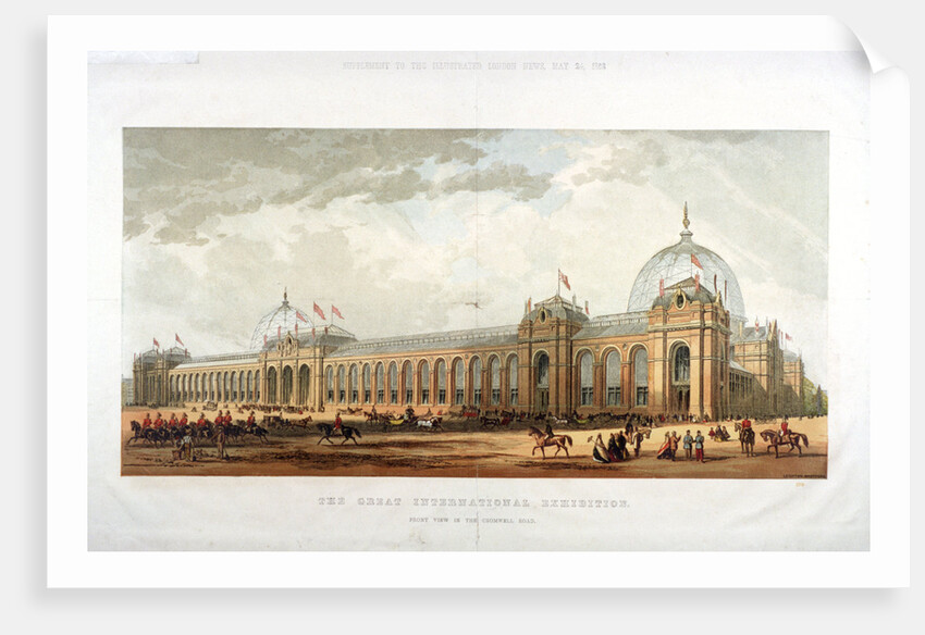 Cromwell Road, Kensington, London, 1862; view of the building which housed the International Exhibition of 1862; front view in Cromwell Road; shows figures, horse drawn traffic and mounted cavalry.