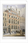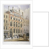 Crosby Hall at no 95 Bishopsgate, City of London, 1860. On the street a child runs to avoid a horse and cart transporting barrels.