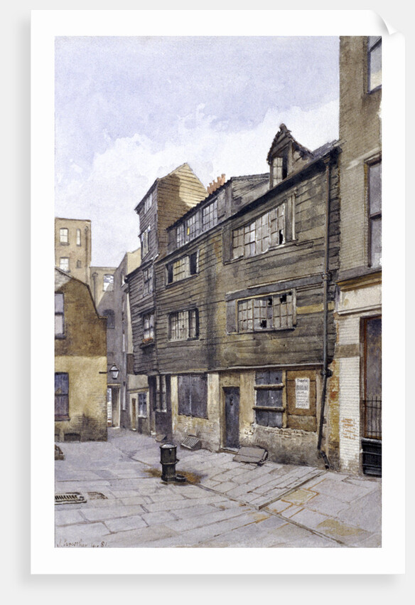 View of the southside of Crown Court, Chancery Lane, London, 1881; also showing a pump.