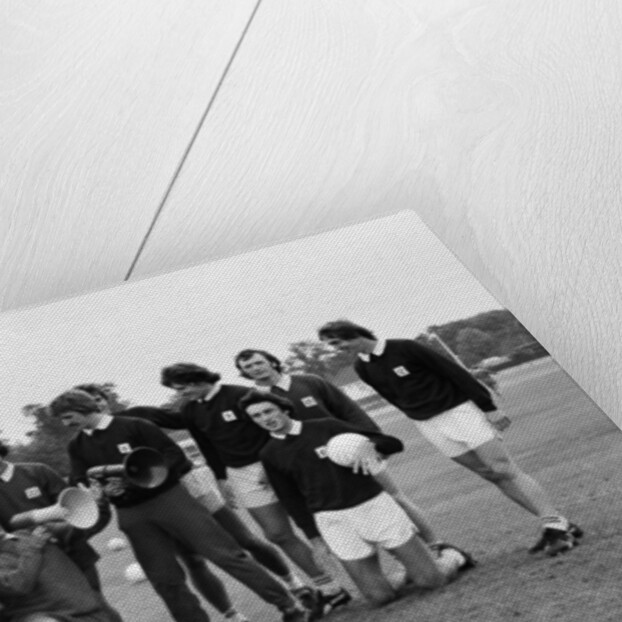 Crystal Palace manager Terry Venables in good voice with his players at a training session. The first team squad have recorded two numbers 'Power to the Palace ' and 'Flying High'. Here they are pictured going over a few of the lyrics. 25th September 1975.
