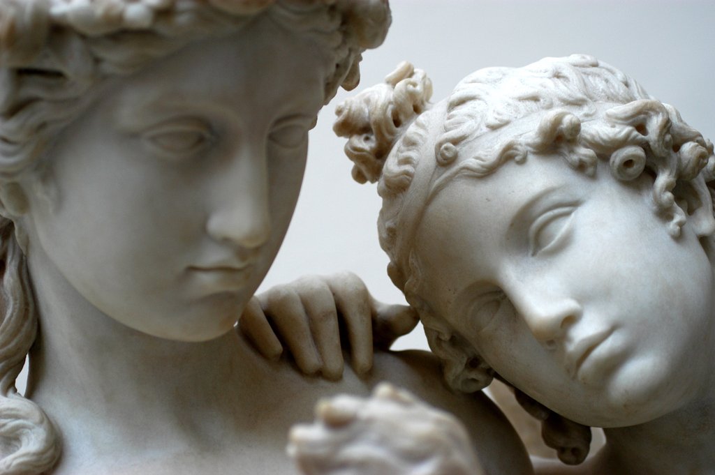 Cupid and Hymen, detail of faces, by George Rennie (1802-1860). Marble. England, 19th century.