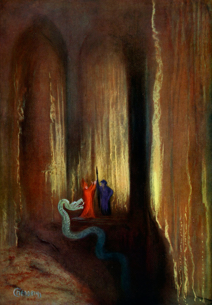 'Dark Cavern', 1906. From The Ring Cycle of operas by German composer Richard Wagner. Alberich turns into a serpent to prove the powers of the ring to Wotan and Loge.