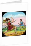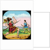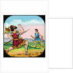 David Killing Goliath. David killing the Philistine giant with a stone from his sling. According to the Bible, Goliath was 6 cubits (approximately 3 metres) tall. From the Bible (1 Samuel 17:I).