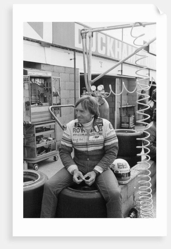 Derek Bell in the pits. He raced in Formula Three, Two and One, before becoming a sportscar racer. He won two World Sportscar titles, five victories in the Le Mans 24 Hours and three in Daytona 24 Hours.