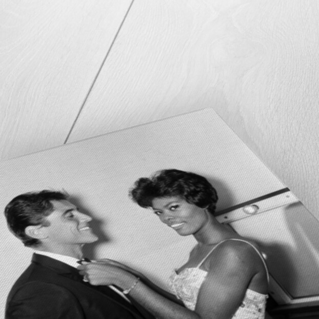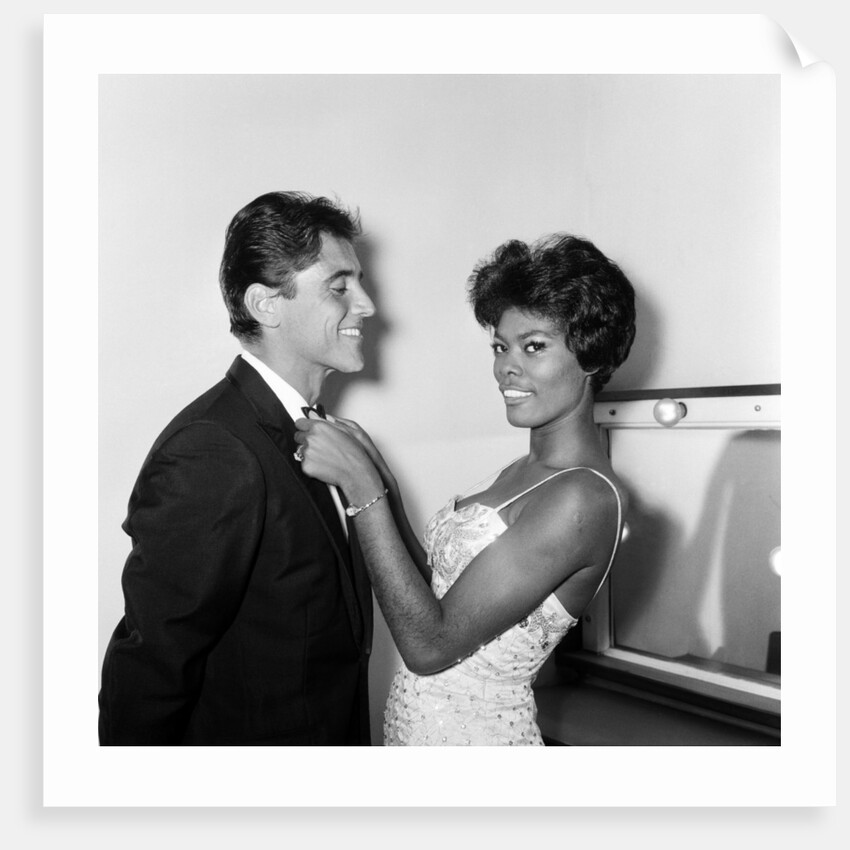 Sacha Distel and Dionne Warwick at the BBC TV theatre, Shepherd's Bush, London. They were there to appear in the Billy Cotton Band show series. 21st September 1964.