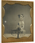 [Dog sitting on a table]; Unknown maker, American; about 1854; Daguerreotype, hand-colored; 1/6 plate, Image