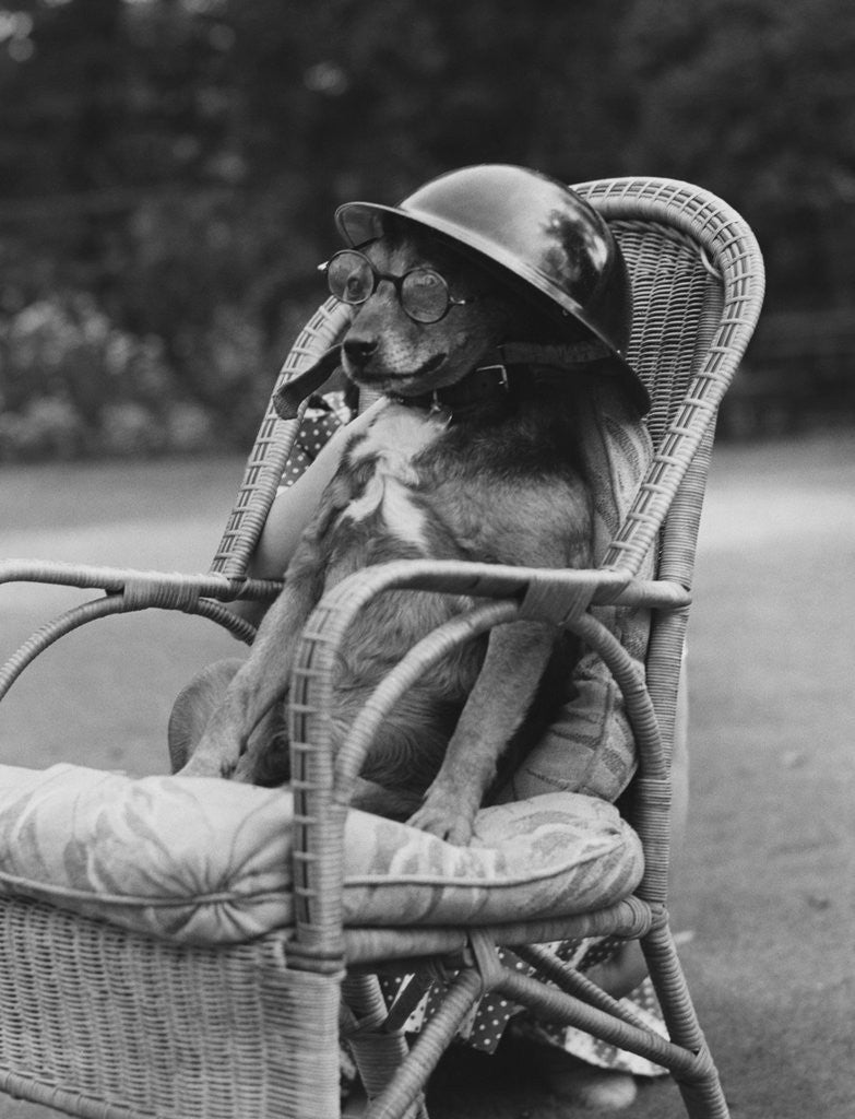 Dog Wearing Air Raid Prevention Warden's Helmet